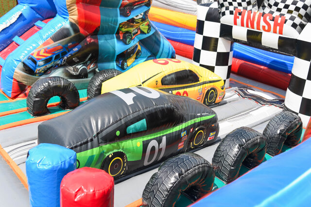 To add to the excitement, we've included adorable inflatable cars that your little one can ride and play with. These cars are perfect for imaginative play, allowing your toddler to feel like a real race car driver as they zoom around the inflatable track.